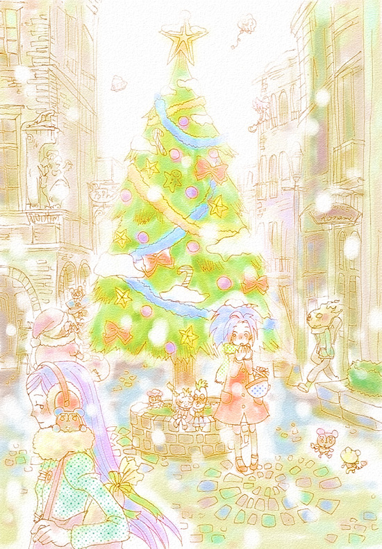 キャラブックの冬服CS5っこたちをまとめて描きたかったのと、そろそろクリスマスっぽい絵を描きたかったので、ギュッとつめこんでみました。